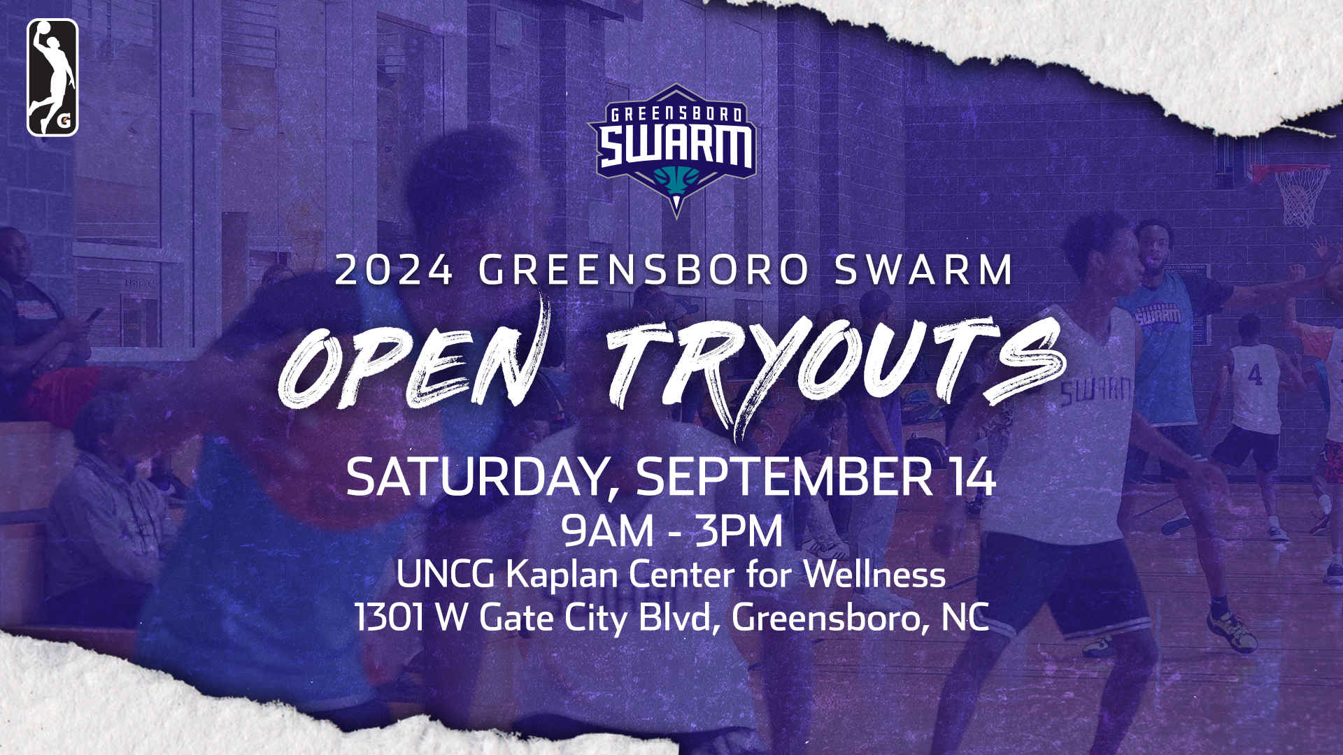 July 24, 2024 - The Greensboro Swarm, the NBA G League affiliate of the Charlotte Hornets, announce that the team will hold a one-day open tryout for prospective players. This tryout will occur on Saturday, September 14, 2024, at the UNCG Kaplan Center for Wellness.