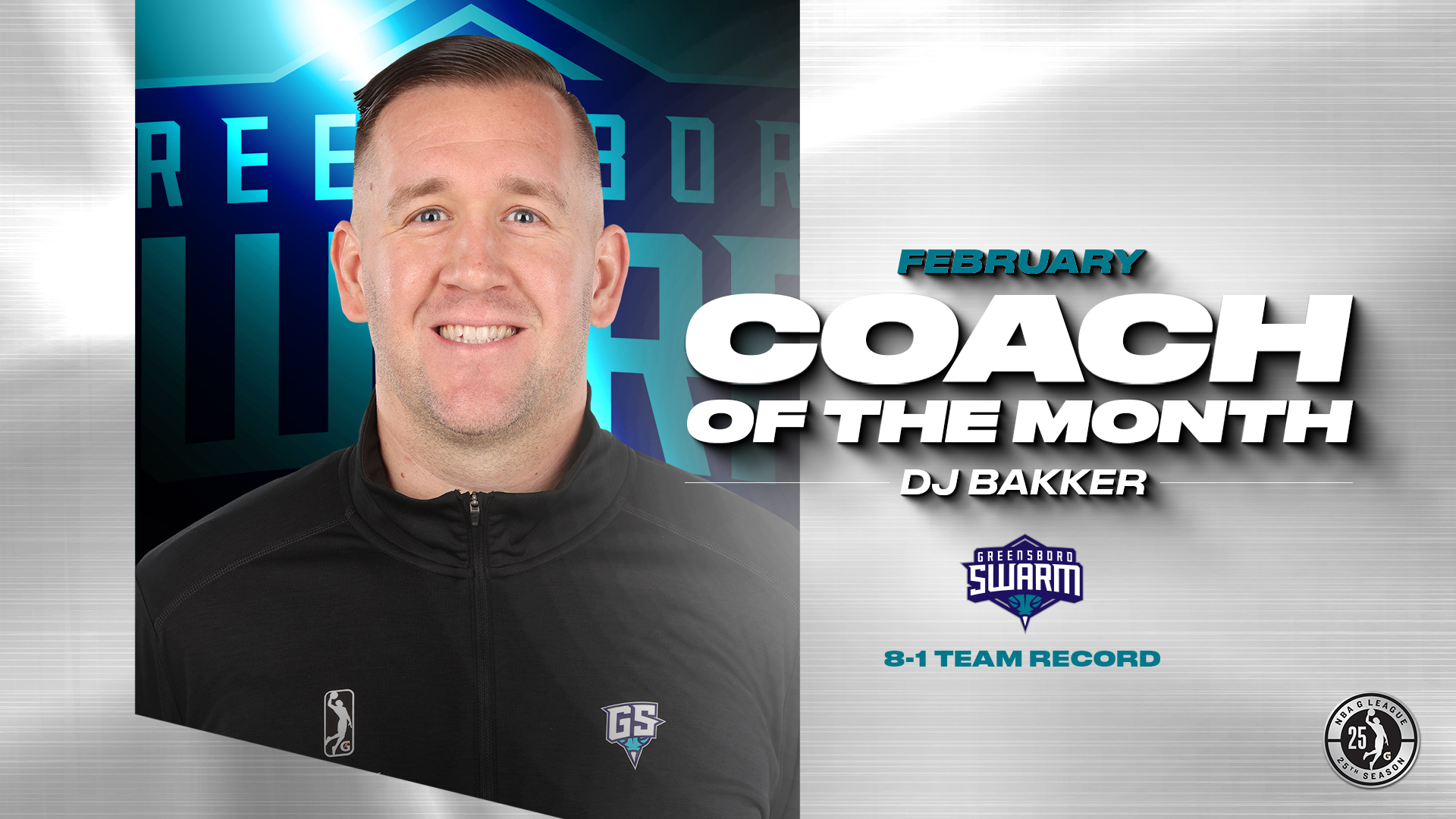 GREENSBORO, N.C. – Greensboro Swarm Head Coach DJ Bakker has been named NBA G League Coach of the Month for February, the league announced today.