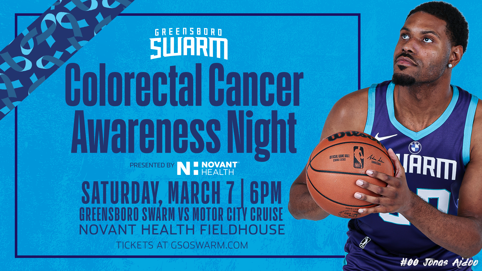 GREENSBORO, N.C. – The Greensboro Swarm, the NBA G League affiliate of the Charlotte Hornets, today unveiled its themed jersey ahead of Colorectal Cancer Awareness Night, presented by Novant Health, on March 7 at 6 p.m. ET against the Motor City Cruise.