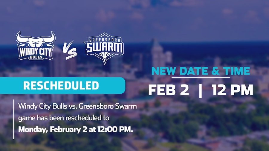 GREENSBORO, N.C. – The Greensboro Swarm announced that its sellout game against the Windy City Bulls, originally scheduled for tonight, Jan. 31, at 6 p.m. ET, has been postponed due to current weather conditions in the Greensboro area.